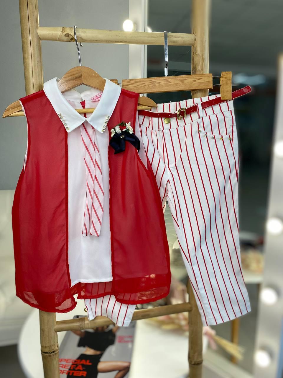 Стильний костюм для дівчинки з блузкою з краваткою 1762 OLIX, Красно-Белый, Девочка, Лето, 12 лет