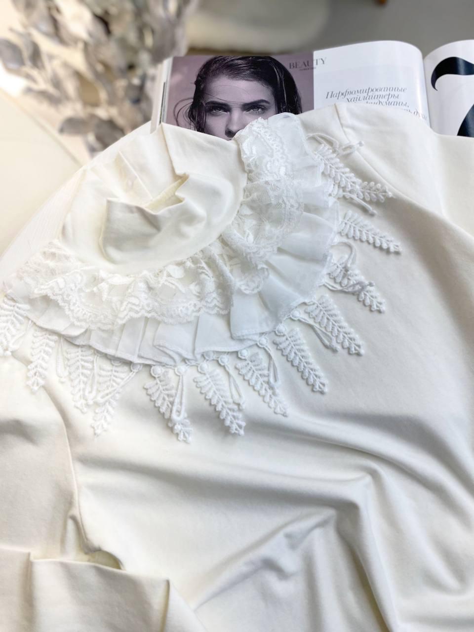 Блузка для дівчинки гіпюр Молочна 3094 Eltelya, Молочный, Для девочек, Весна Осень, 10/11 лет