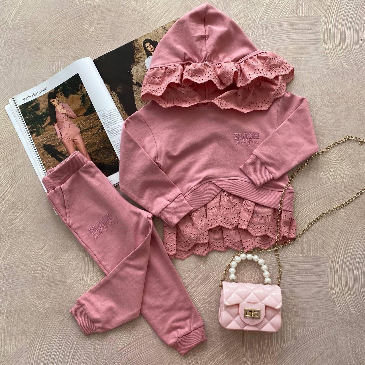 Нарядний костюм для дівчинки "Bloom" Пудровий 3224 - зручний одяг у шафі. Позитивні якості костюма для дитини зрозумілі :