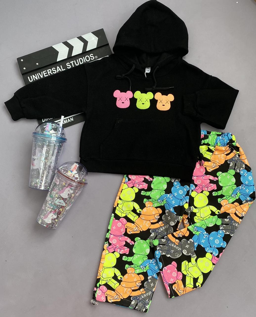 Спортивний костюм для дівчинки з ведмедиками Чорний 35721 - практична річ у гардеробі дівчинки та хлопчика. Переваги спортивного костюма для дитини зрозумілі: