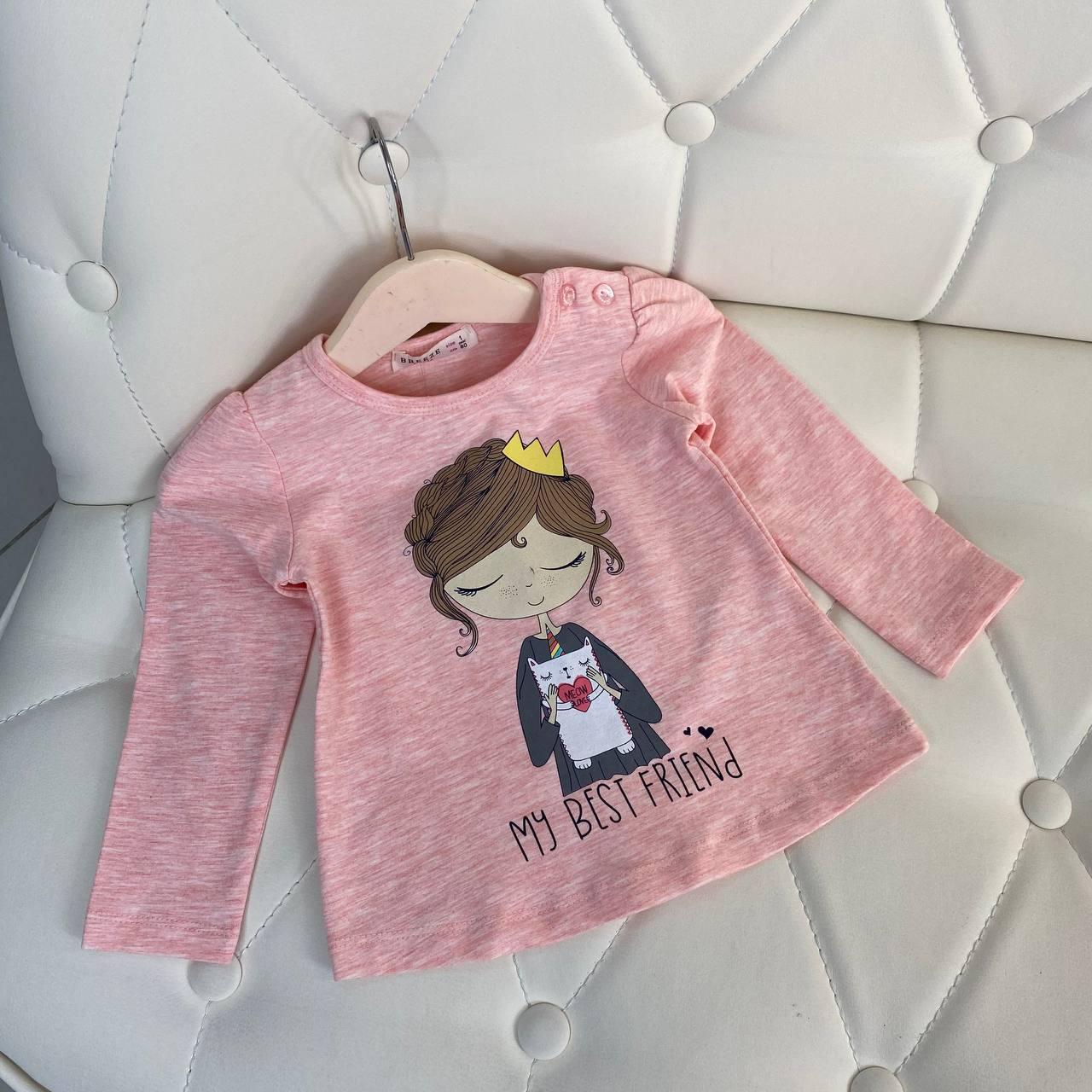 Модна кофта реглан для дівчинки з принцесою Рожева 16446, Breeze, Рожевий, Для дівчаток, Весна Осінь, 80